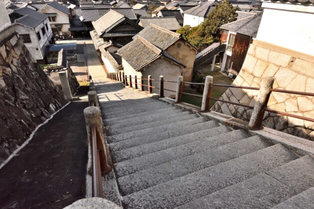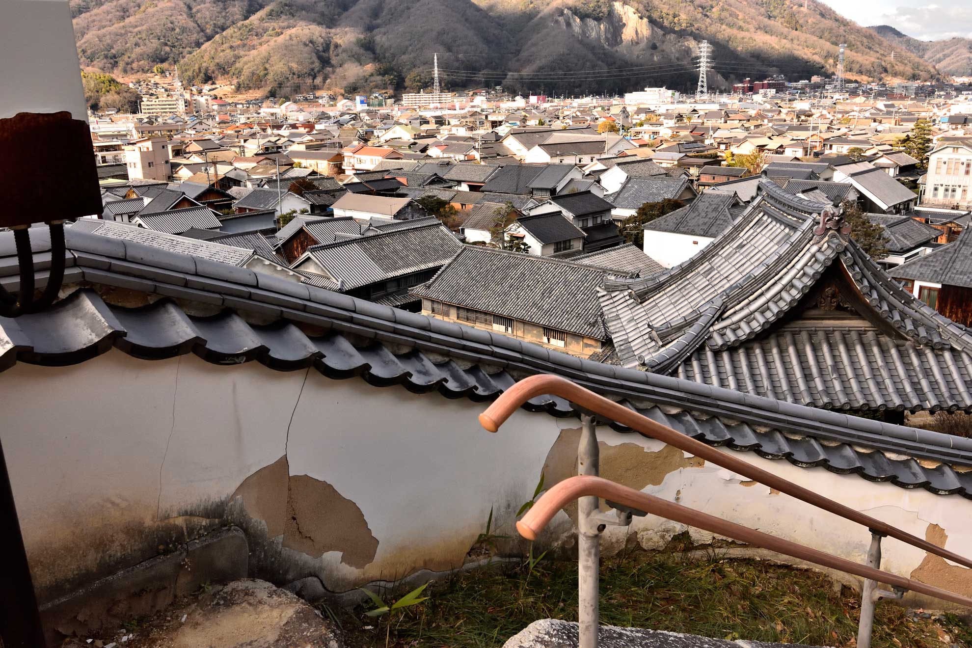 たけはら町並み保存地区は江戸時代の旧家を残し、電線などのインフラが景観を邪魔しないよう保存されています。