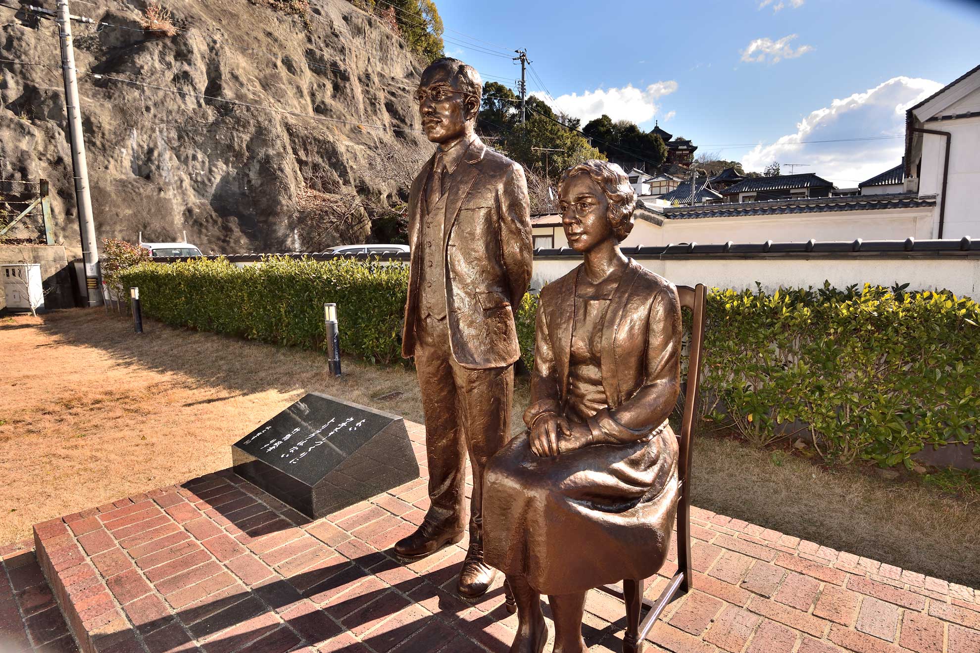こちらは竹鶴政孝氏とその妻?の銅像。